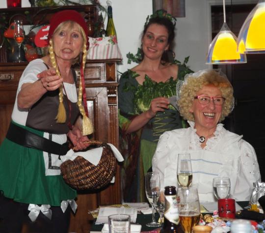 Es war das 2. Krimi-Dinner unseres Freundeskreises. Da wir mehr Personen waren als vorgesehene Rollen, haben wir ein paar Märchenfiguren dazu genommen: den Jäger, das Rumpelstilzchen, der Hans im Glück, die gute Fee.