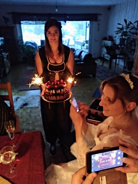 Die Hochzeitstorte getragen von Priya
