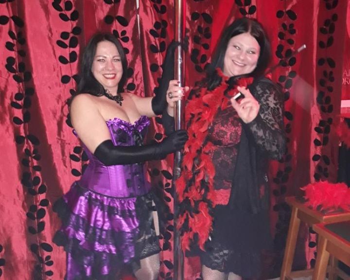 Eva Ritter Katharina Zink Justine Bordeaux und Sophie Holzmann vor der Tanzstange
