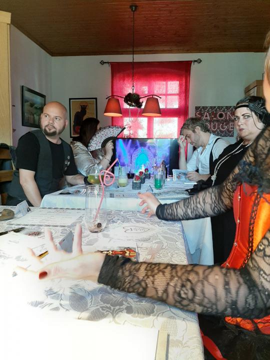 5. Krimidinner. Gäste und Deko perfekt im Spiel