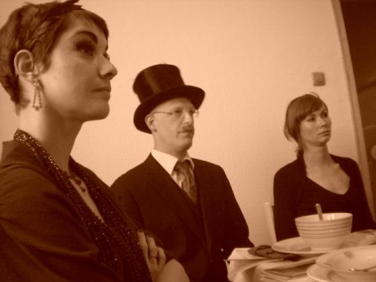 Auf der Premierenfeier Tychas fabelhaften Stücks "Wie Ihr es wollt". Wie gut, dass Inspektor Fischer bereits hier Beweismaterial über die Anwesenheit der Verdächtigen festgehalten hat!