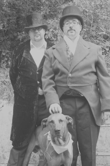 sitzend: Inspektor Fischer (mit Watson) und Senator Thormayr