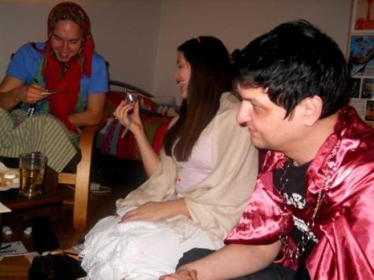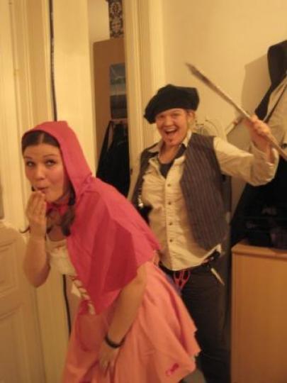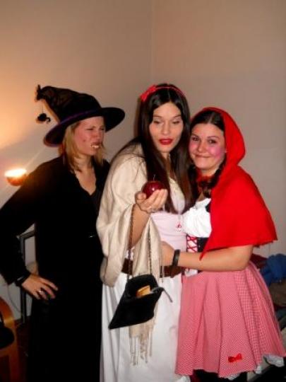 v.l.n.r.: rumpelstilzchen, hexe, gretel, rotkäppchen, inspektorin frau holle (die für den schnee gesorgt hat), schneewittchen, die böse stiefmutter, das tapfere schneiderlein, hänsel, der märchenprinz